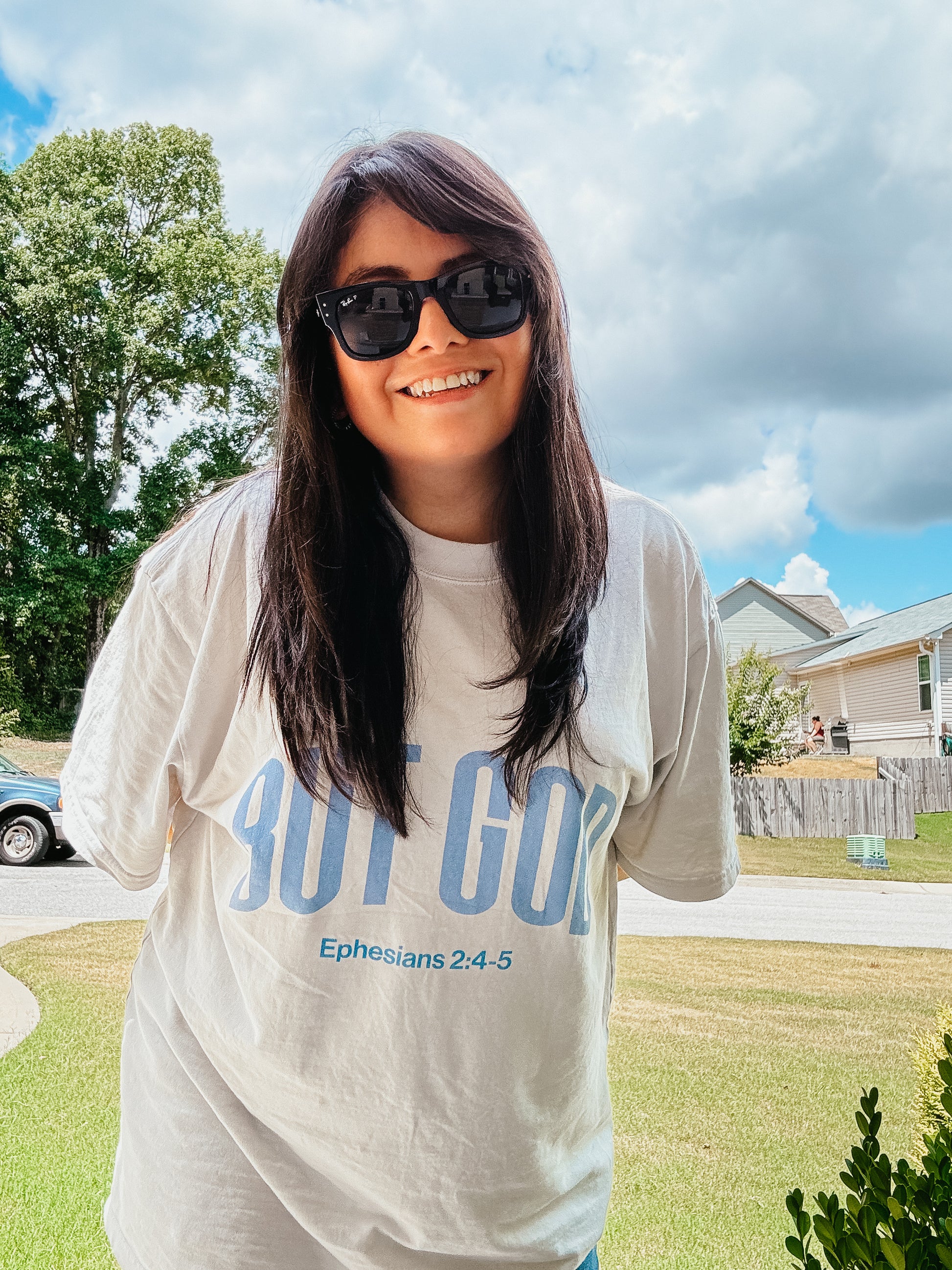 The perfect oversized t-shirt to start a conversation about what God has done in your life!